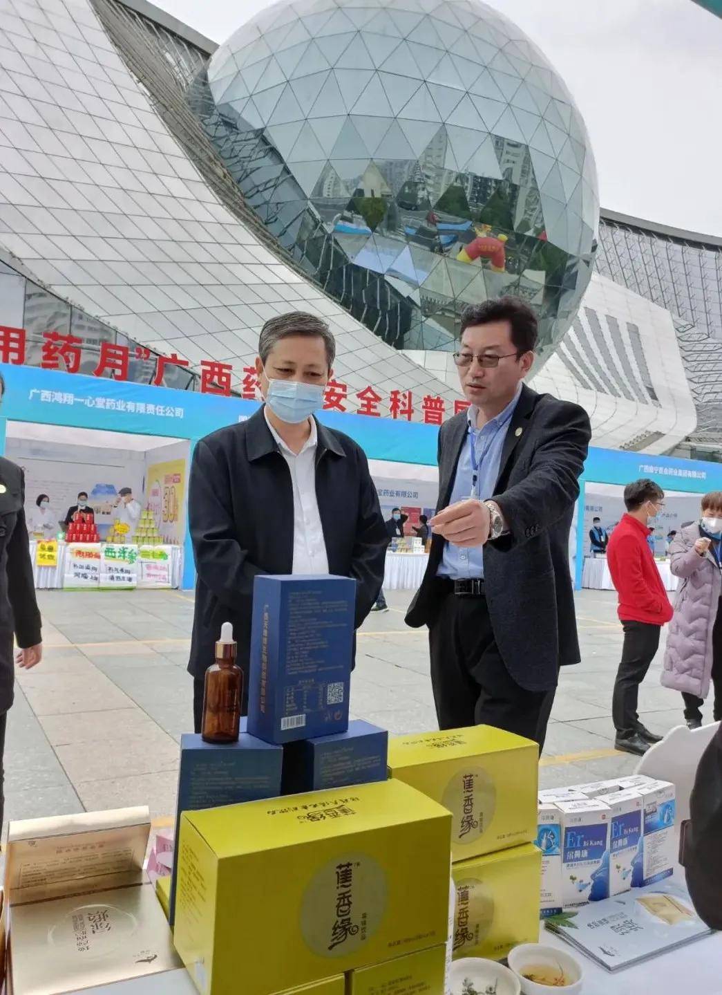 自治区科协党组书记、副主席纳翔先生,广西医药商会党支部书记黄建国先生以及广西科普传播中心刘慧英理事长先后来到展位了解企业情况,看到火爆的体验现场,对集团积极参加展会给予充分肯定,对公司传播健康知识,提供惠民体验的活动给予高度赞誉。