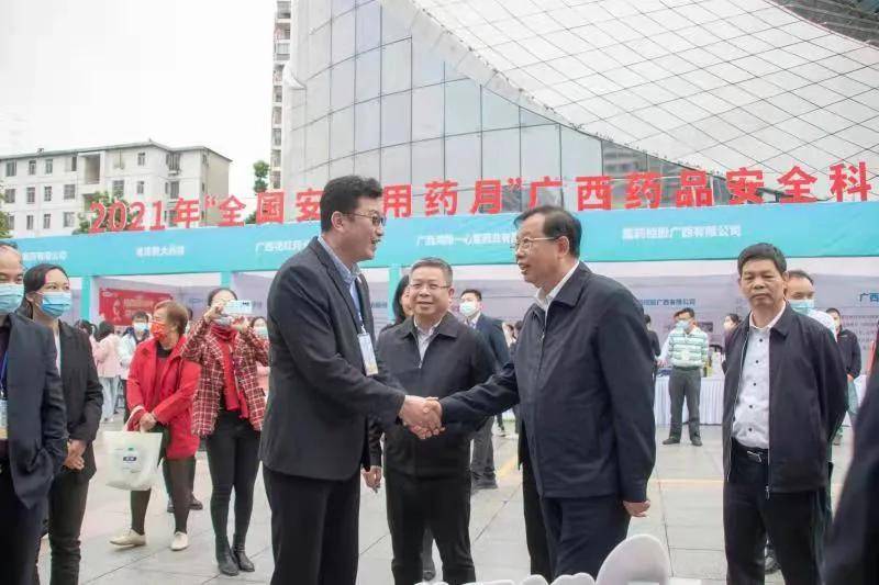 自治区副主席李彬出席仪式并宣布2021年“全国安全用药月”广西宣传活动暨药品安全科普展启动。自治区政府副秘书长李盛,自治区市场监管局局长巫家世,自治区科协党组书记、副主席纳翔,自治区市场监管局党组成员、药监局党组书记、局长黄琛,自治区发展改革委一级巡视员黄汝焜,自治区药品医疗器械审评审批制度改革厅际联席会议和自治区疫苗管理厅际联席会议成员单位的领导出席活动。自治区药监局党组成员、副局长韦广辉主持活动,党组成员、副局长万秋参加活动。