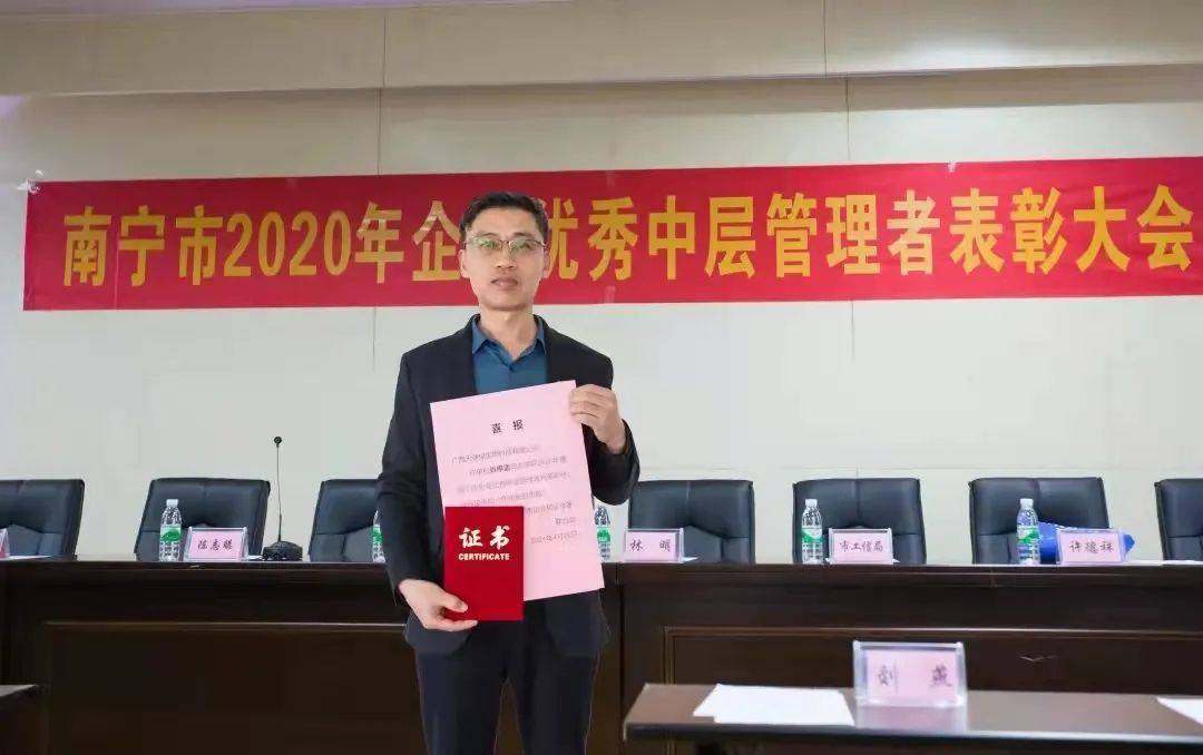 在南宁市企业和企业家联合会主办的“2020年度南宁市企业优秀中层管理者”评选活动中,集团总裁办特助、九绿药品总经理肖甲孟先生荣获“2020年度南宁市企业优秀中层管理者”称号!