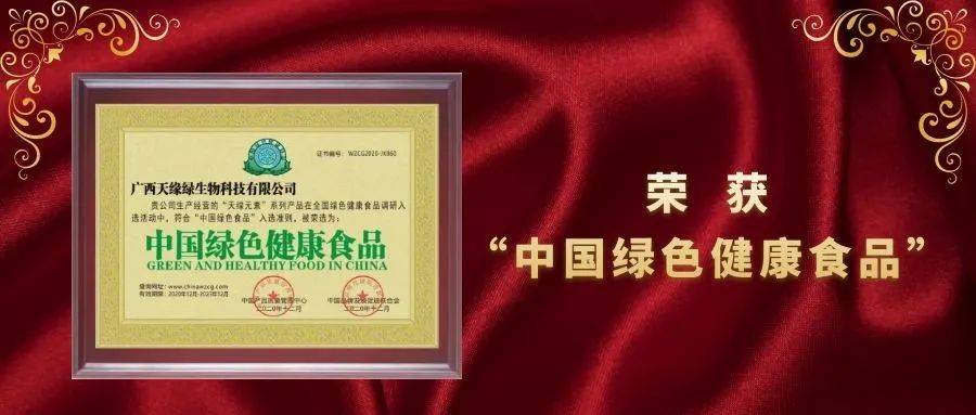 集团母公司研发生产经营的“天绿元素”系列产品以优质的选材、过硬的品质,赢得了广大用户的认可,在全国绿色健康食品调研入选活动中,经过严格审核,符合入选标准,被荣选为“中国绿色健康食品”!