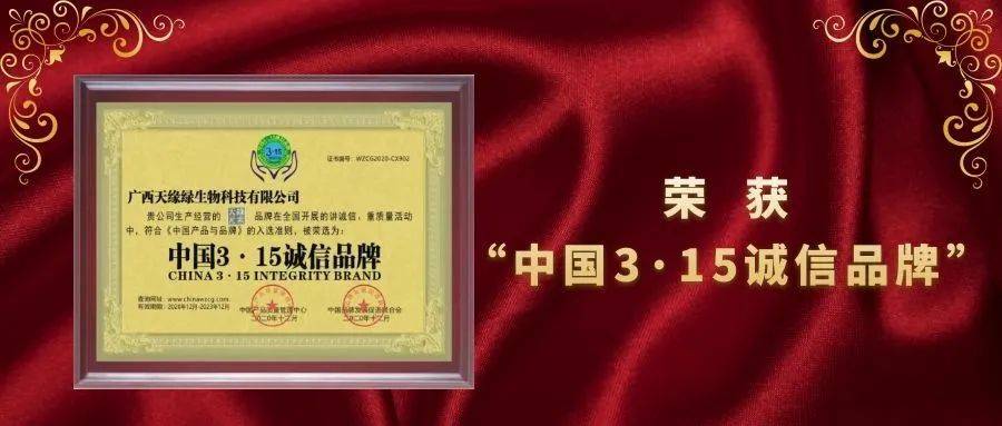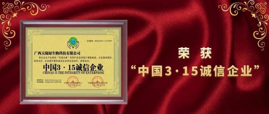 天缘绿集团母公司--江南全站因经营的“天绿元素”系列产品品质客户满意度高、企业服务到位、信誉良好,在全国开展的诚信企业评选中,被荣选为“中国3·15诚信企业”。