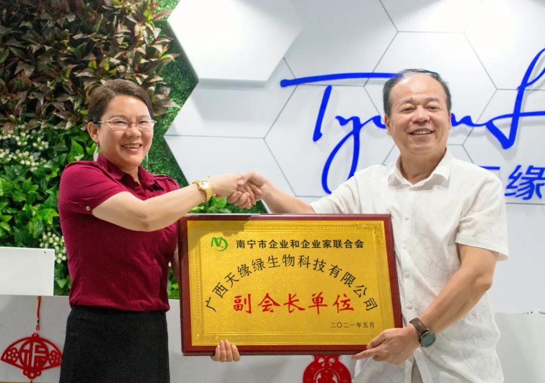 【再获殊荣】南宁市企联走访调研天缘绿集团,并授予“副会长单位”荣誉牌匾