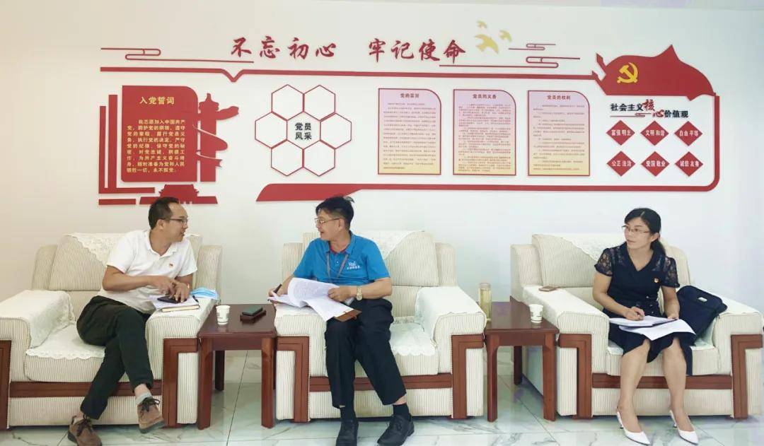 7月27日下午,社会治安综合管理办公室施永榴主任一行三人来到天缘绿集团进行“先锋引领·亲商强企”大行动专题调研走访,集团财务部总监伍立新先生接待了调研组一行。