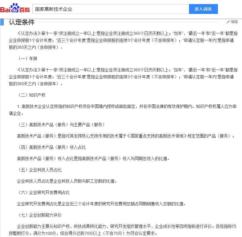 简单的说,就是要包含这些条件:不能是刚刚成立的新公司,而且要有一定数量的科研人员、要有一定金额的科研费用投入、要符合创新能力评定(知识产权、科技成果转化能力、开发组织管理水平、企业有良好的发展前景)。大家要知道,以上的这些条件并不是“或”的关系,而是缺少任何一项,都是不能申请的哦!