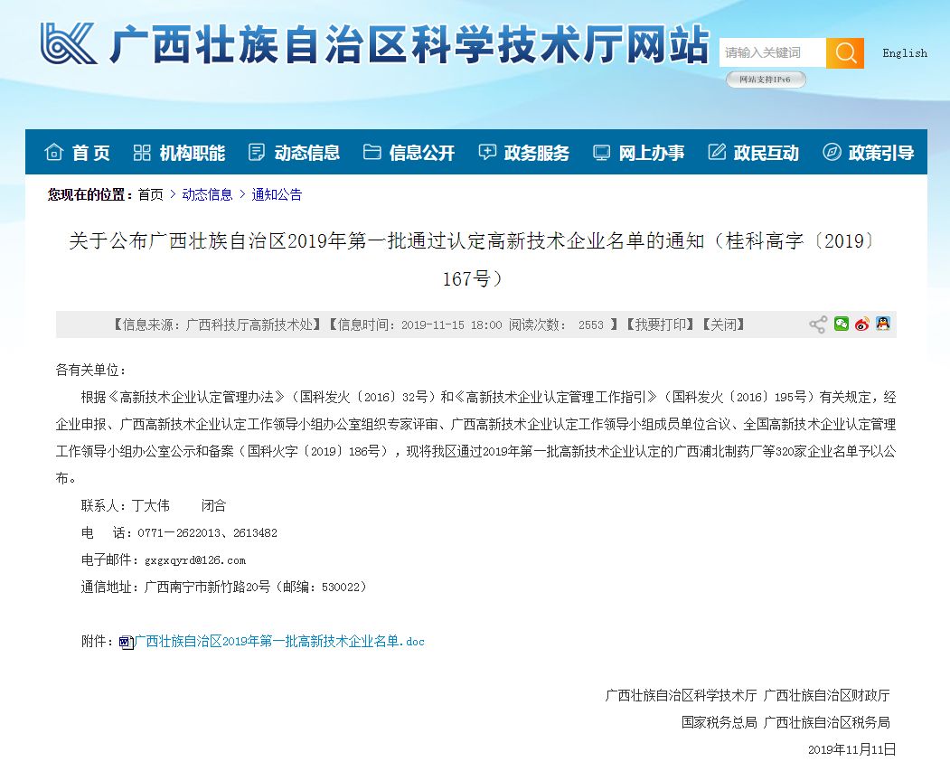 同时,公司在各项业务的开展中,不断引进高新技术人才,加大科技研发力度,先后申报蕉科植物萃取液在癌症中的应用等二十多项专利,取得十余项专利证书,并于2019年6月开始启动高新企业的申报,于2019年11月正式获得“国家高新技术企业”的认定。