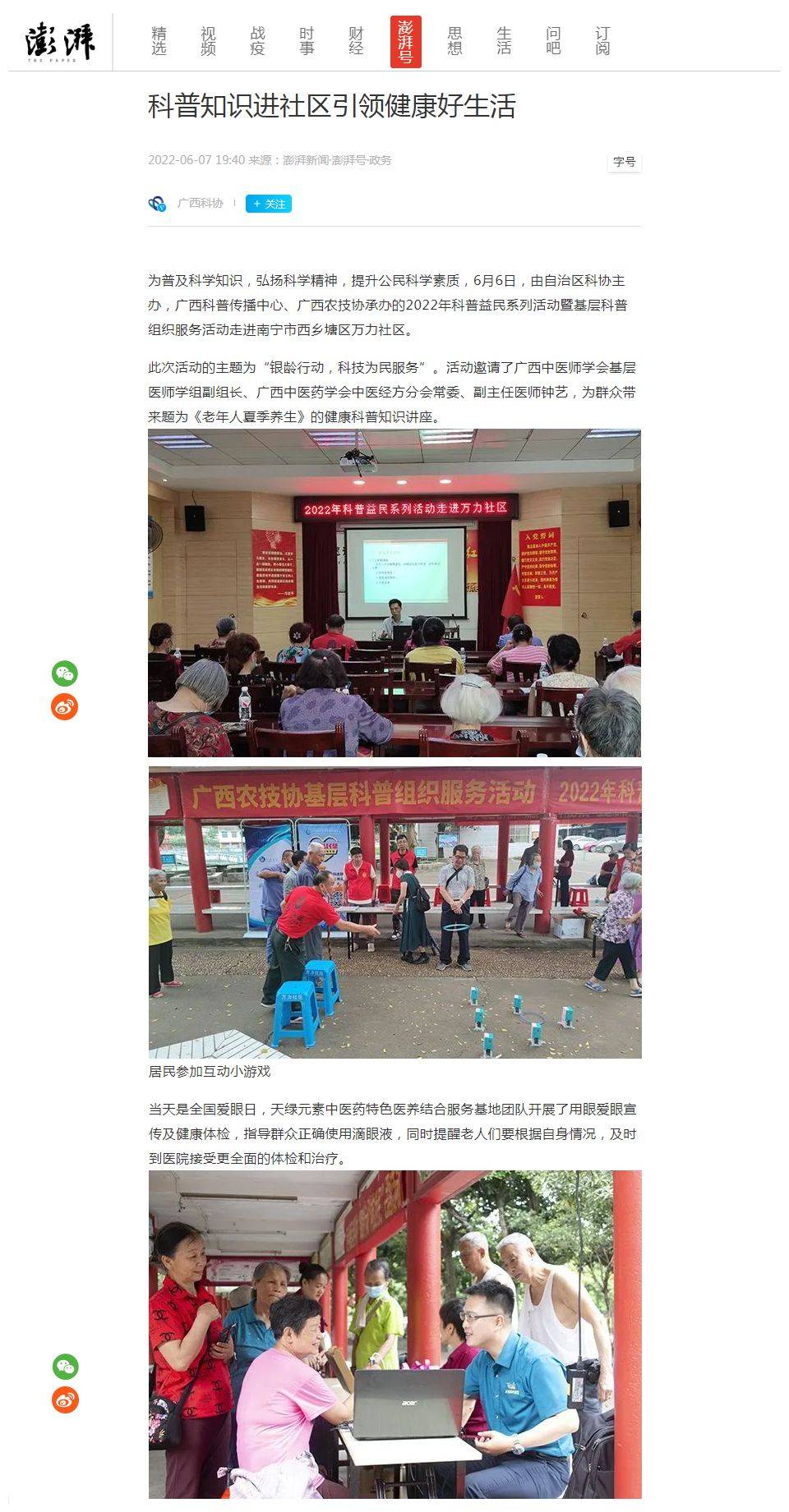这场活动的成功举办,获得了广西科协、医药星期三,南方农事、澎湃新闻、搜狐网等。众多媒体的点赞,让我们从这些报道中,再次感受本次活动的重要意义。