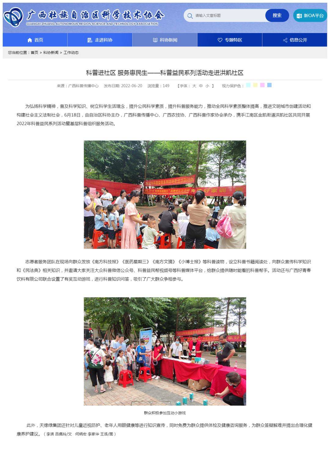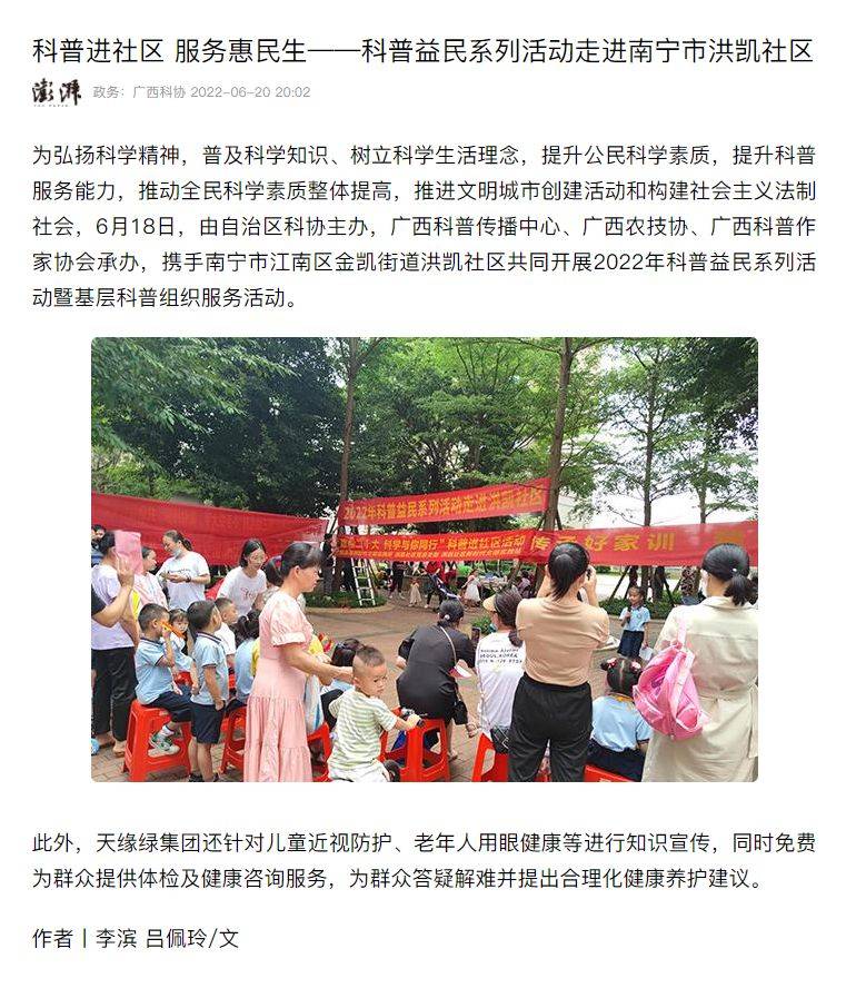 为丰富社区居民的精神文化生活,提高居民的健康意识和防病能力。6月18日,由广西科协主办,广西科普传播中心、广西天缘绿科技集团承办的“喜迎二十大 科学与你同行”科普进社区活动走进了南宁市洪凯社区。在此次活动中,天绿元素系列产品深受群众的欢迎和好评!