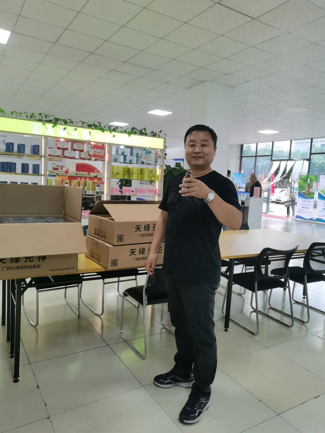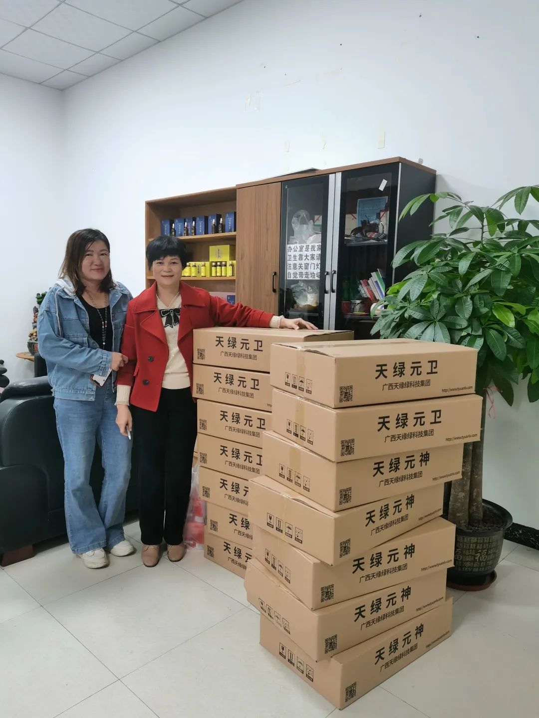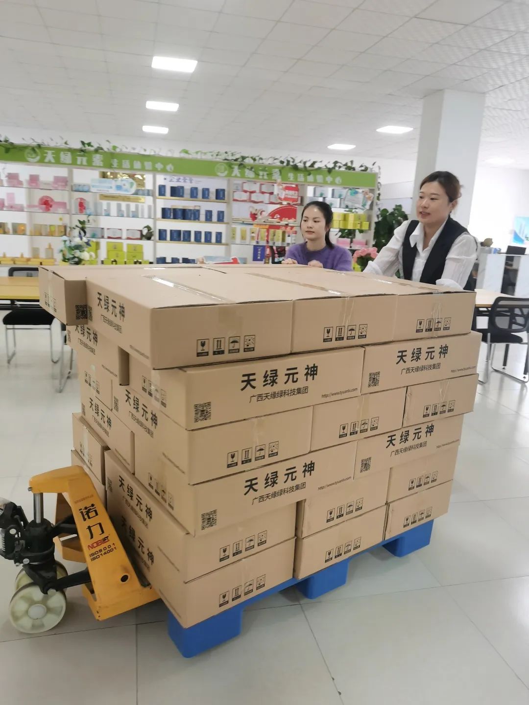 一大早,市场小伙伴们就开始忙碌起来,一车接一车把天绿元神和天绿元卫运至市场部,做好上市开售准备。