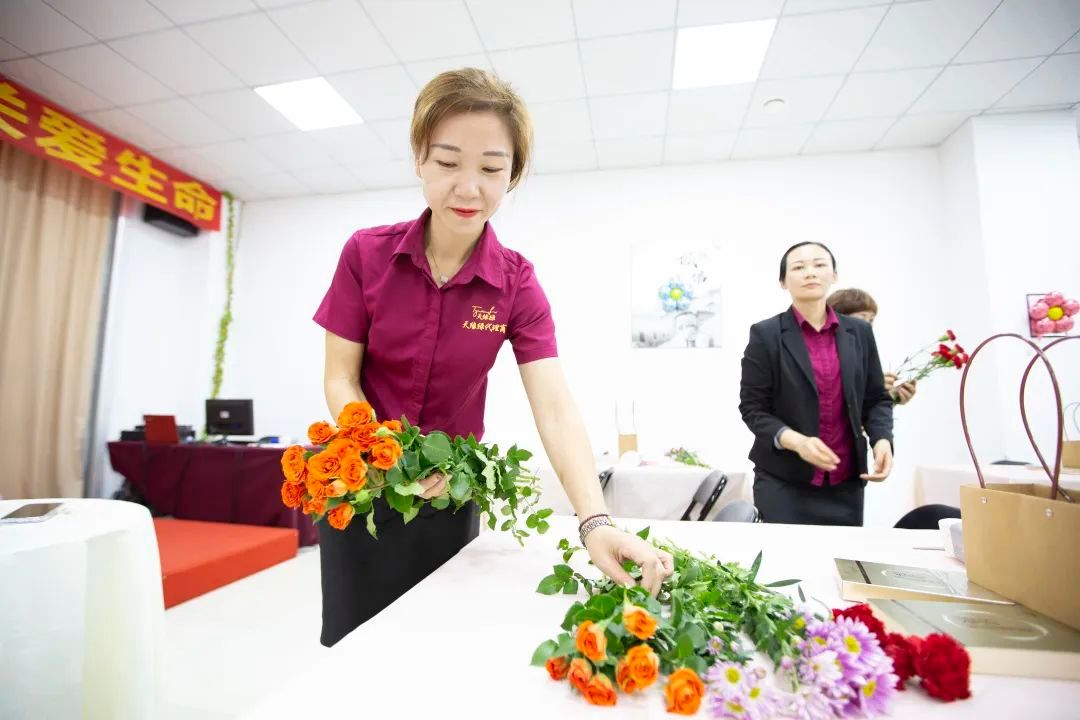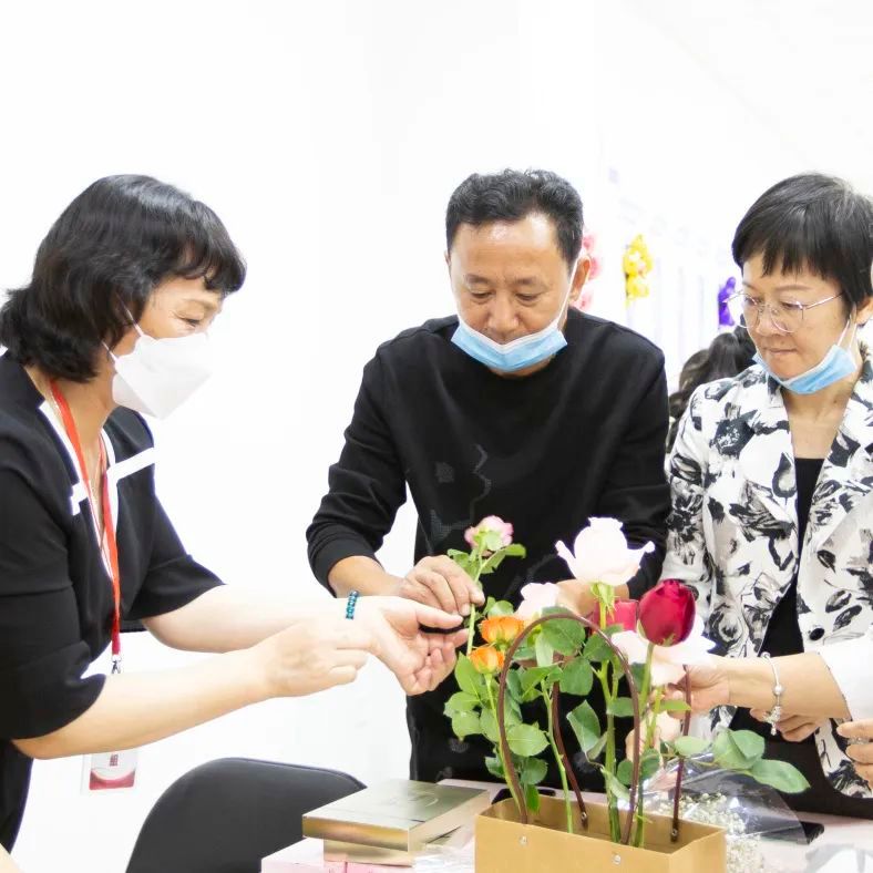 活动在充满欢声笑语的插花体验中拉开序幕:看着桌上摆放的各色各样的鲜花,大家分工合作、全情投入,将精心裁剪的鲜花插入花篮中,分享对美的诠释。