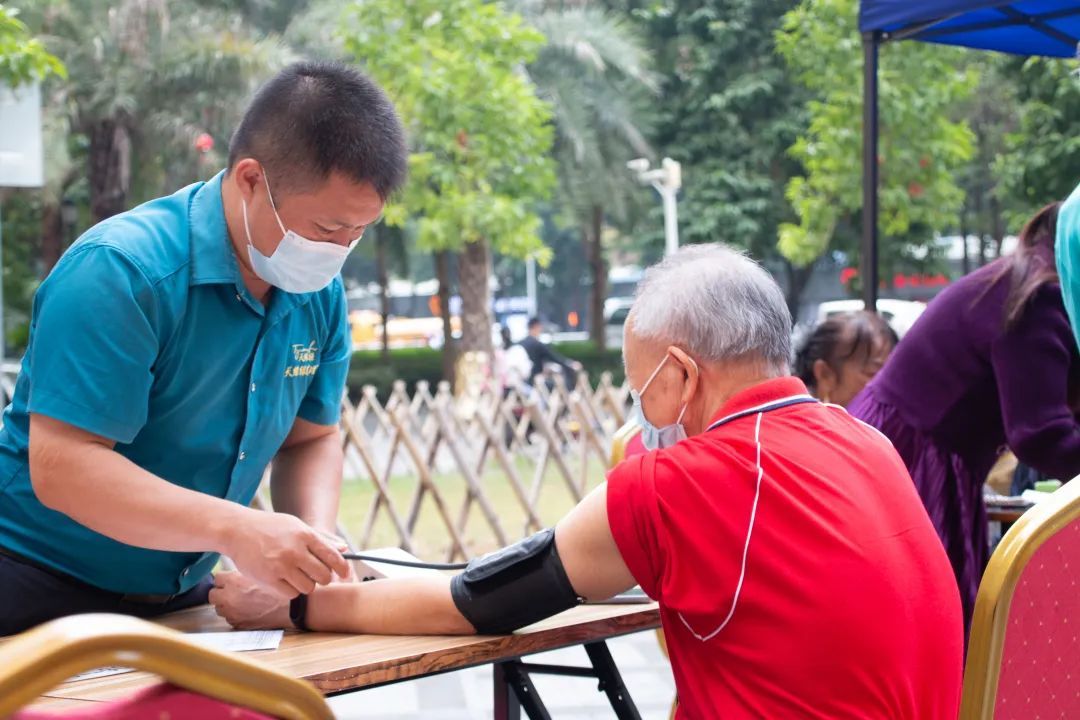 11月5日、6日,天缘绿集团联合老兵委新时代志愿者总队开展全民健康公益进社区活动。由集团天福缘团队资深健康管理师为社区居民提供免费体检及健康咨询服务。