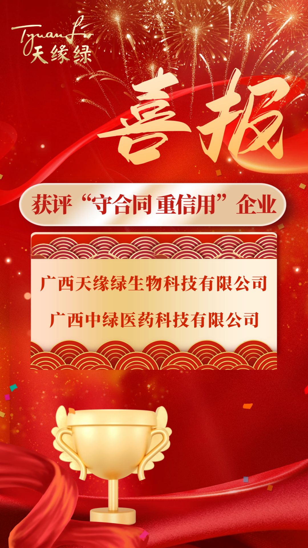 天缘绿集团母公司、子公司获评广西2021年度“守合同 重信用”企业