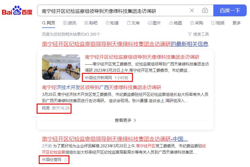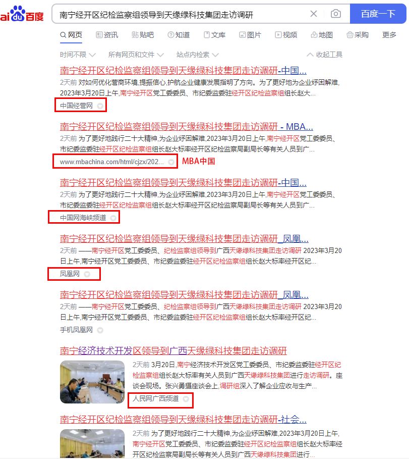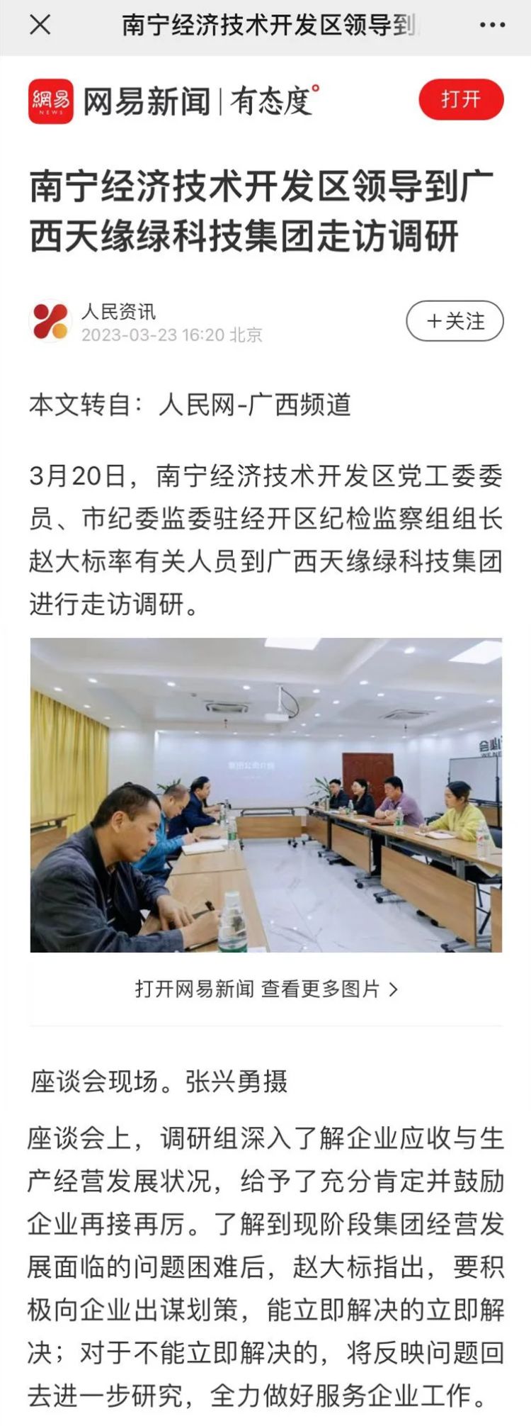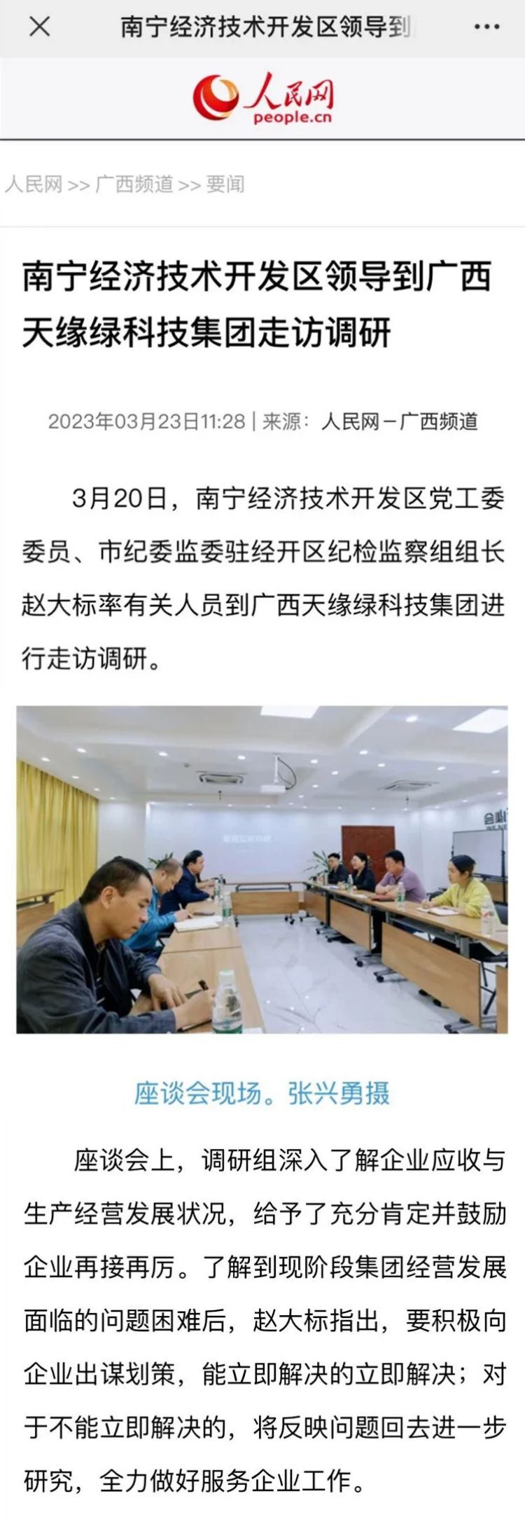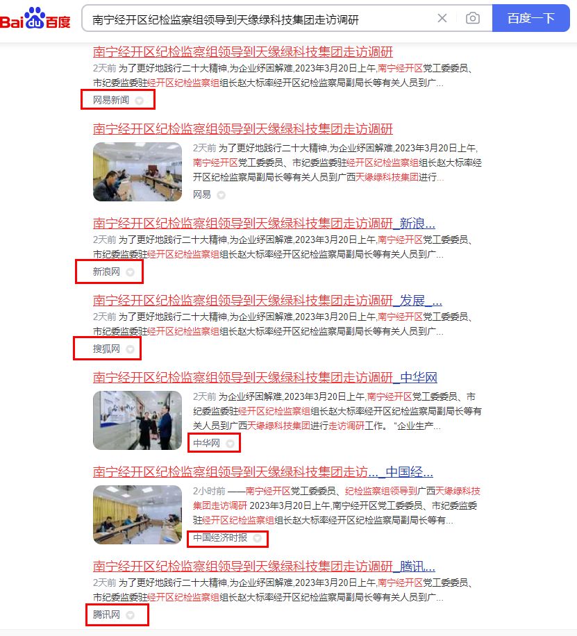 赞!30多家媒体持续关注报道南宁经开区领导到天缘绿集团走访调研