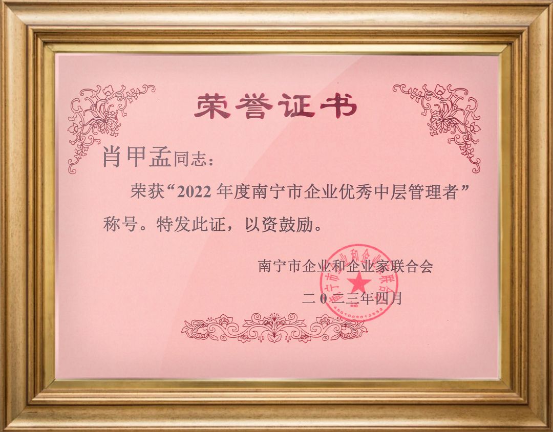喜报!广西天缘绿科技集团管理层荣获“南宁市 2022 年度企业优秀中层管理者”荣誉