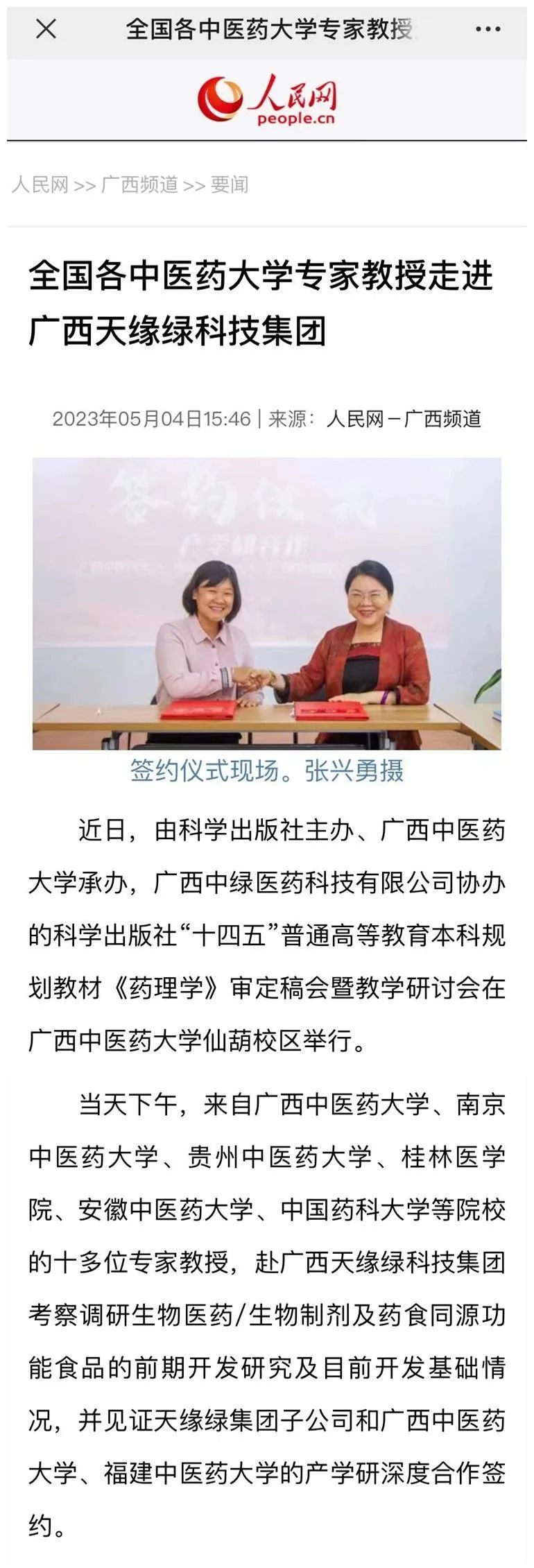 全国中医药专家教授齐聚广西天缘绿科技集团,探讨中医药创新传承发展,引人民网等多家媒体关注报道