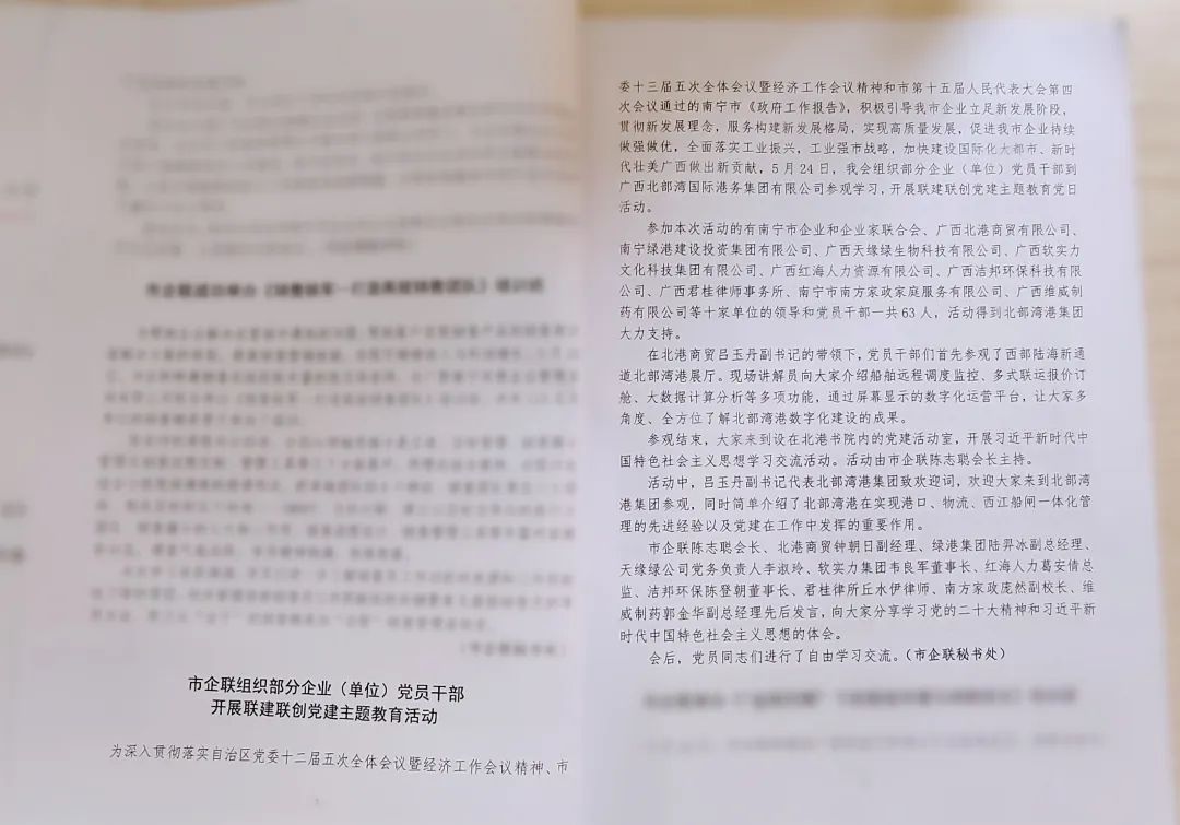 摘要:5月31日,南宁市企联刊发的5月会员内刊中,详细报道了广西天缘绿科技集团近期开展的多个活动。