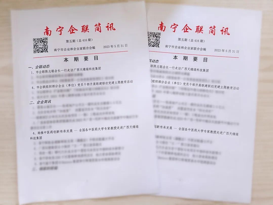 广西天缘绿科技集团多个活动获南宁市企联会员内刊专题报道