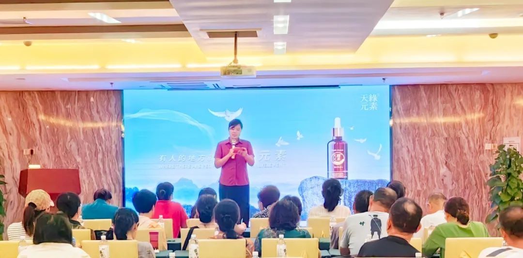 此次健康交流会备受天缘绿集团领导层关注和重视,市场总监郭小田女士带领李婷女士、吴冰女士、张辉先生等一行前往安庆,并亲自担任了会议主讲嘉宾。