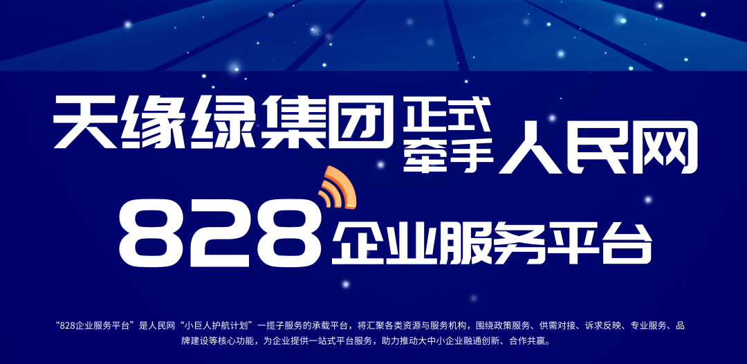 因此,此次天缘绿集团获得人民网‘828企业服务平台’的优先邀请,成为首批入驻并受到重点培育的企业,是对集团实力和贡献的肯定,对集团具有着重要的意义和影响。集团不仅能够及时了解和享受国家和地方的惠企政策,还能拓宽B2B业务渠道、优选合作供应商、提升品牌影响力、增强市场竞争力,同时还获得了政府和社会的关注和支持,推动了政策落地,并能借助人民网的政治、传播、品牌、平台、投资等五大价值优势,与各方开放合作,共同建设数字生态,促进天缘绿集团高质量创新发展。