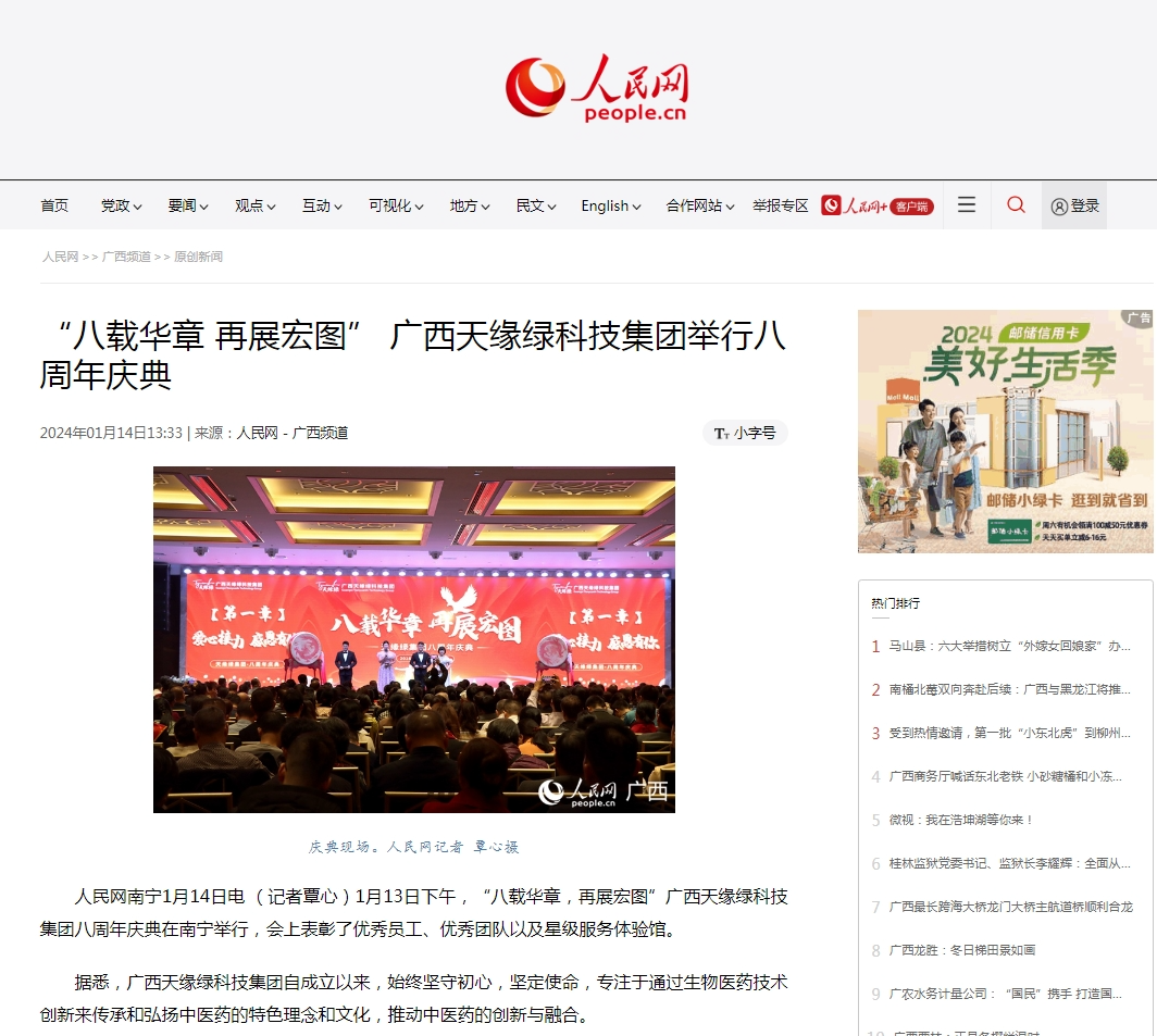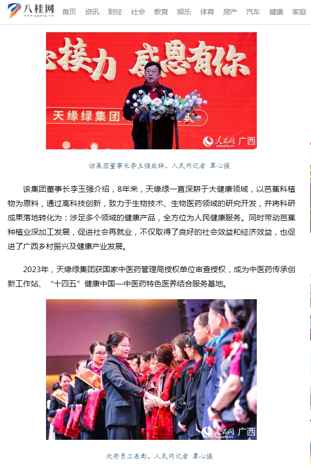 随后,中国日报网、搜狐网、网易新闻、华声晨报、八桂网、中国经济新闻网等众多主流媒体纷纷转载报道天缘绿集团的八周年庆典。各大媒体的转载和发布不仅让更多人了解了天缘绿集团,还引发了全社会对中医药发展、药食同源文化、传统中医药与现代生物科技融合等方面的关注和思考。