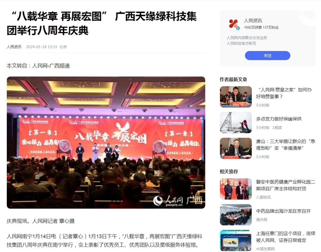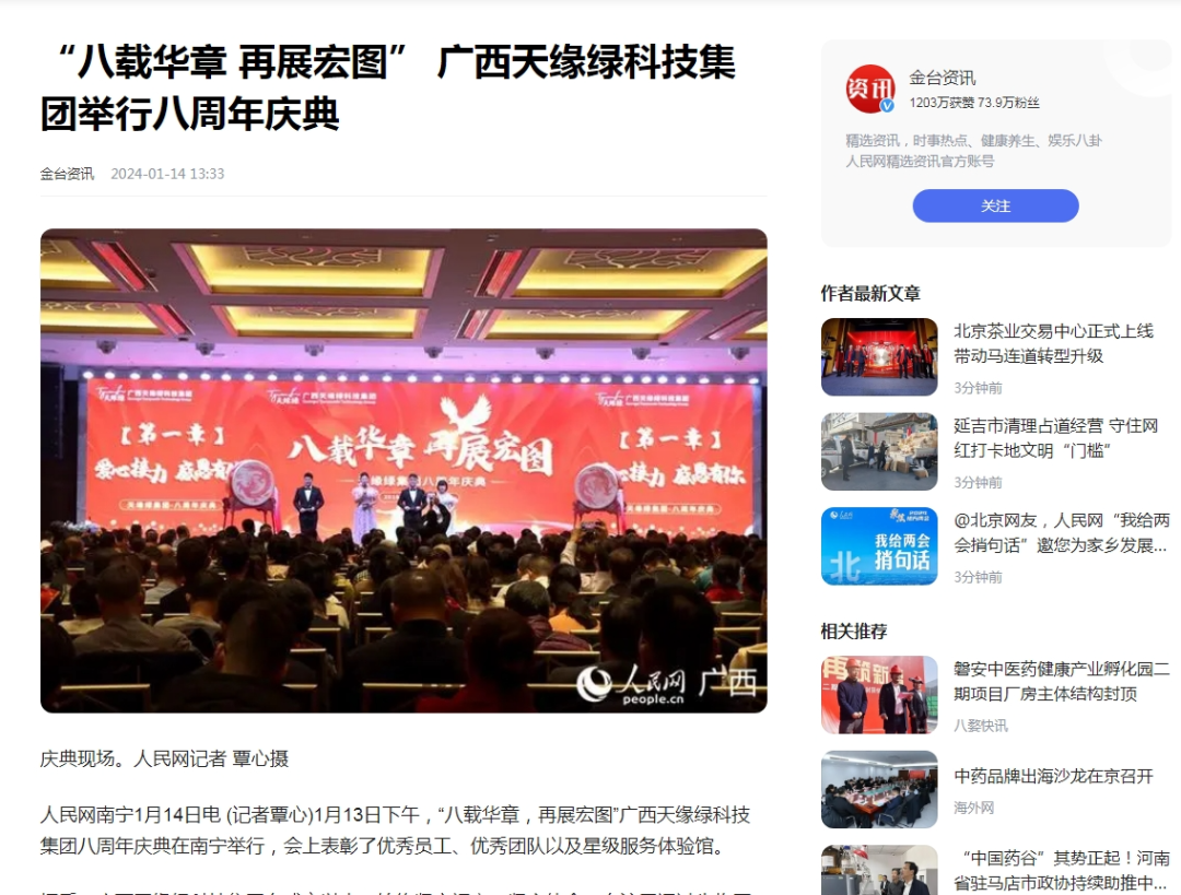 人民网、中国日报网等各大媒体争相报道,天缘绿八周年庆典引关注