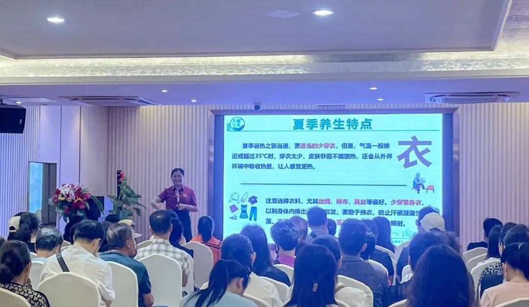 在金城江的交流会上,黄秀森老师登上讲台,以深厚的中医药知识和丰富的实践经验,为现场观众带来了一场精彩纷呈的夏季养生讲座。黄老师从中医角度分析了夏季的气候特点,阐述了夏季养生的要点和方法,让听众们对夏季养生有了更深入的了解。