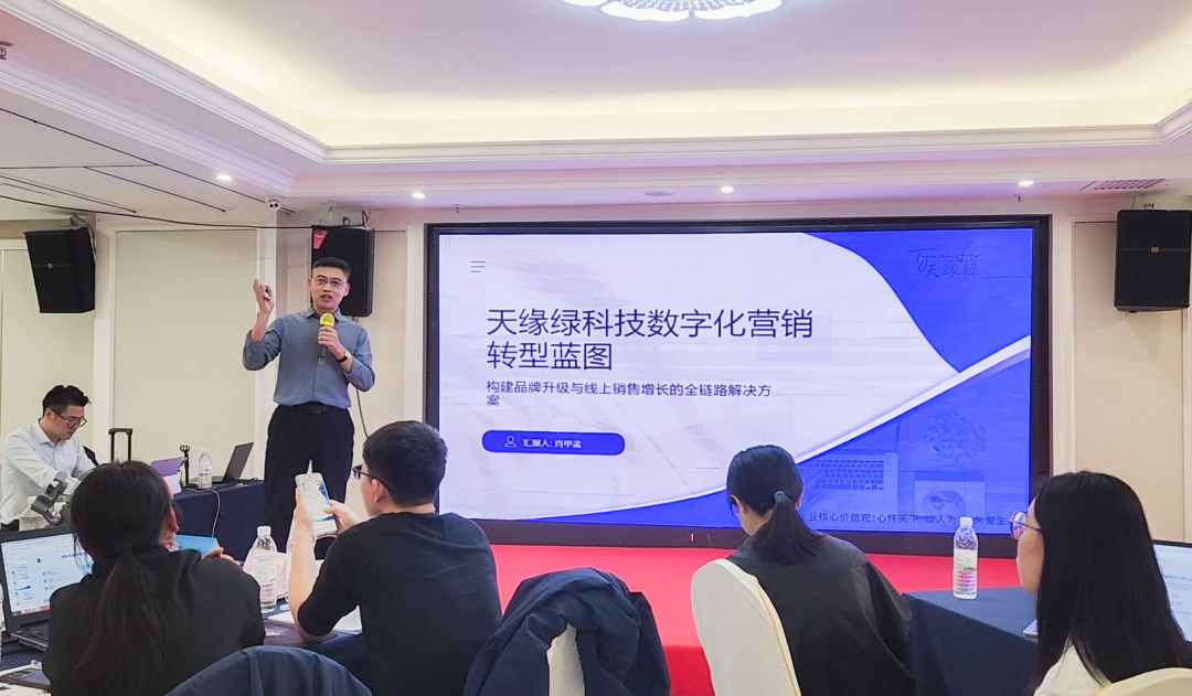 在两天密集培训中,天缘绿团队深度参与各环节学习研讨,积极与专家和同行交流互动。在成果路演环节,团队结合大健康产业特点和企业实际,提交的《天缘绿科技数字化营销转型蓝图--构建品牌升级与线上销售增长的全链路解决方案》获得专家一致好评,展现了团队优异的学习转化能力和战略视野。