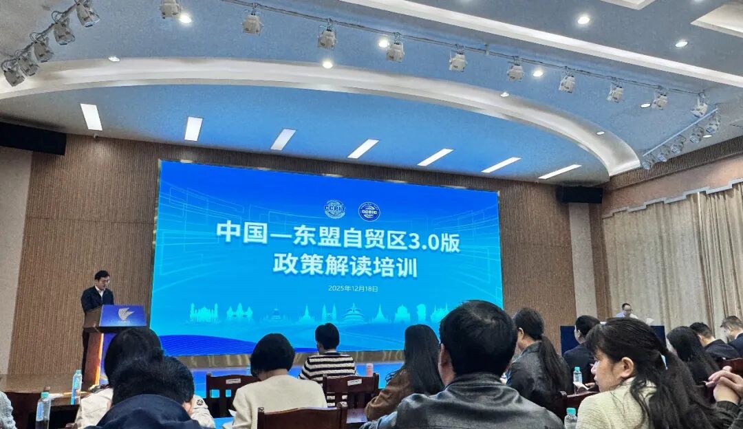 2025年12月18日上午,由中国国际贸易促进委员会广西分会、广西国际商会主办的“中国—东盟自贸区3.0版生效实施政策解读培训”在南宁举行。广西天缘绿科技集团积极组织相关人员参加本次培训,主动对接高水平开放政策,着力提升企业把握区域发展机遇的能力。