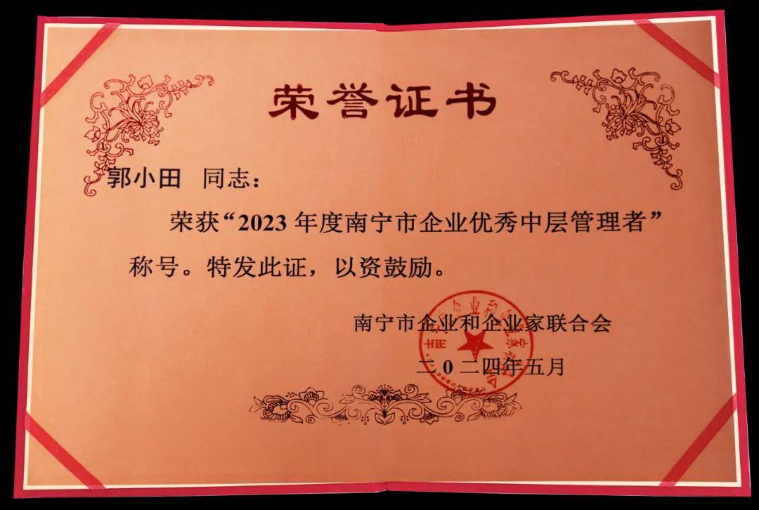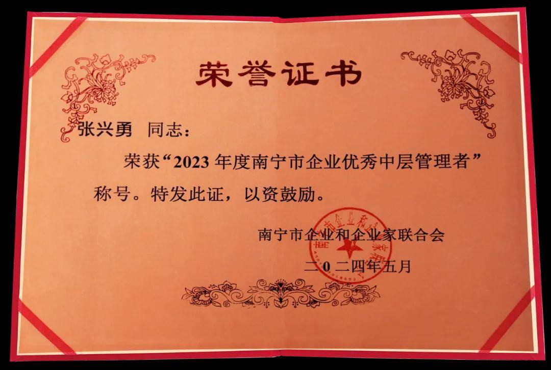 喜报!天缘绿集团多位中层管理者荣获“2023年度南宁市企业优秀中层管理者”