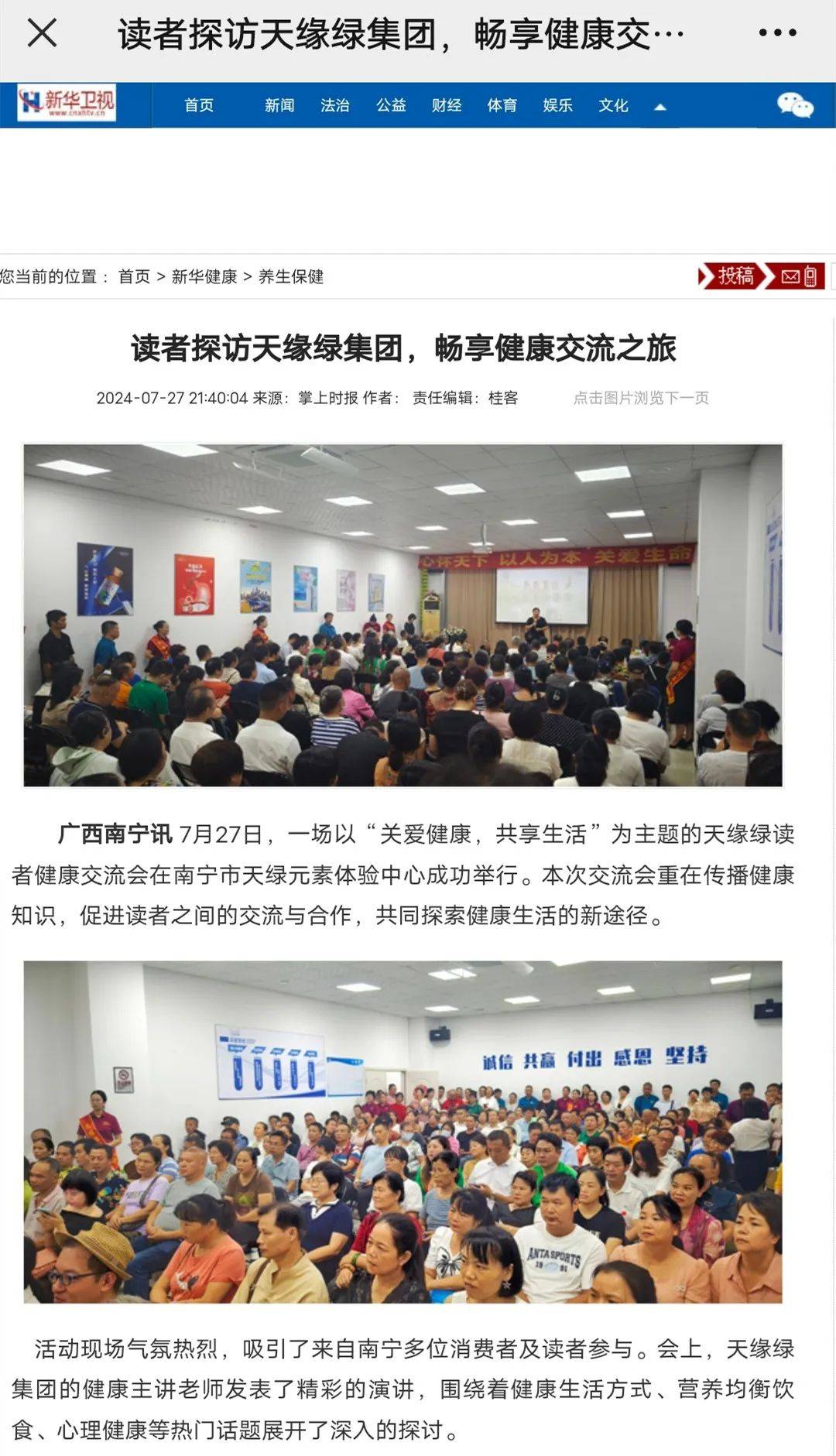 引爆媒体热潮!天缘绿健康交流会获南国早报等三十多个媒体报道