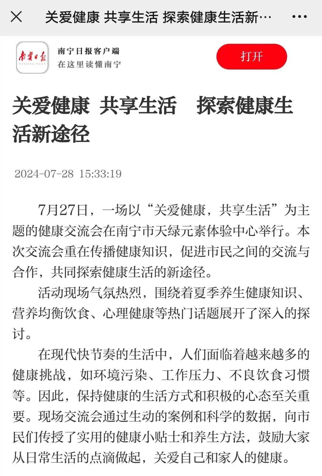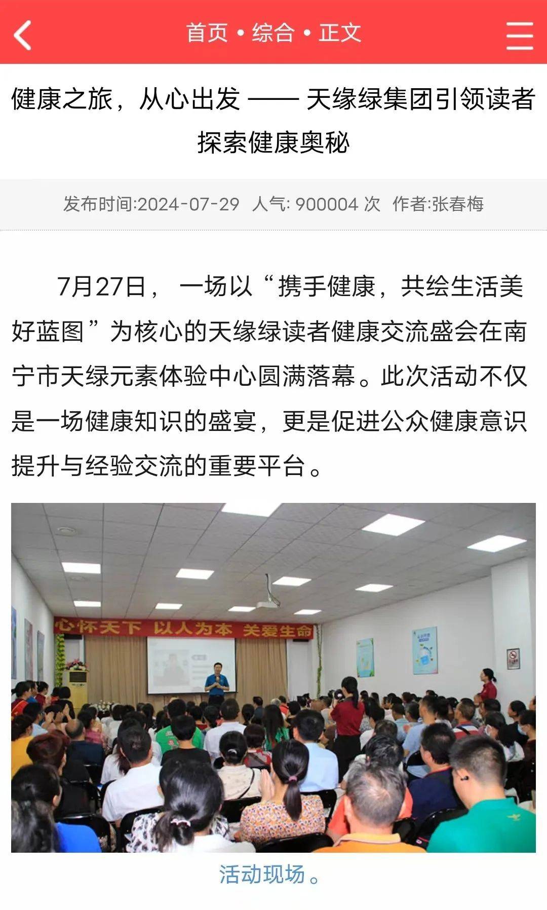 健康交流会活动报道迅速在各大媒体平台上传播开来。许多市民表示,通过媒体的报道,他们不仅学到了很多实用的健康知识,还感受到了天缘绿集团对公众健康的深切关怀和社会责任感,认为这样的活动对于提升公众健康素养、推动健康生活方式非常具有意义。