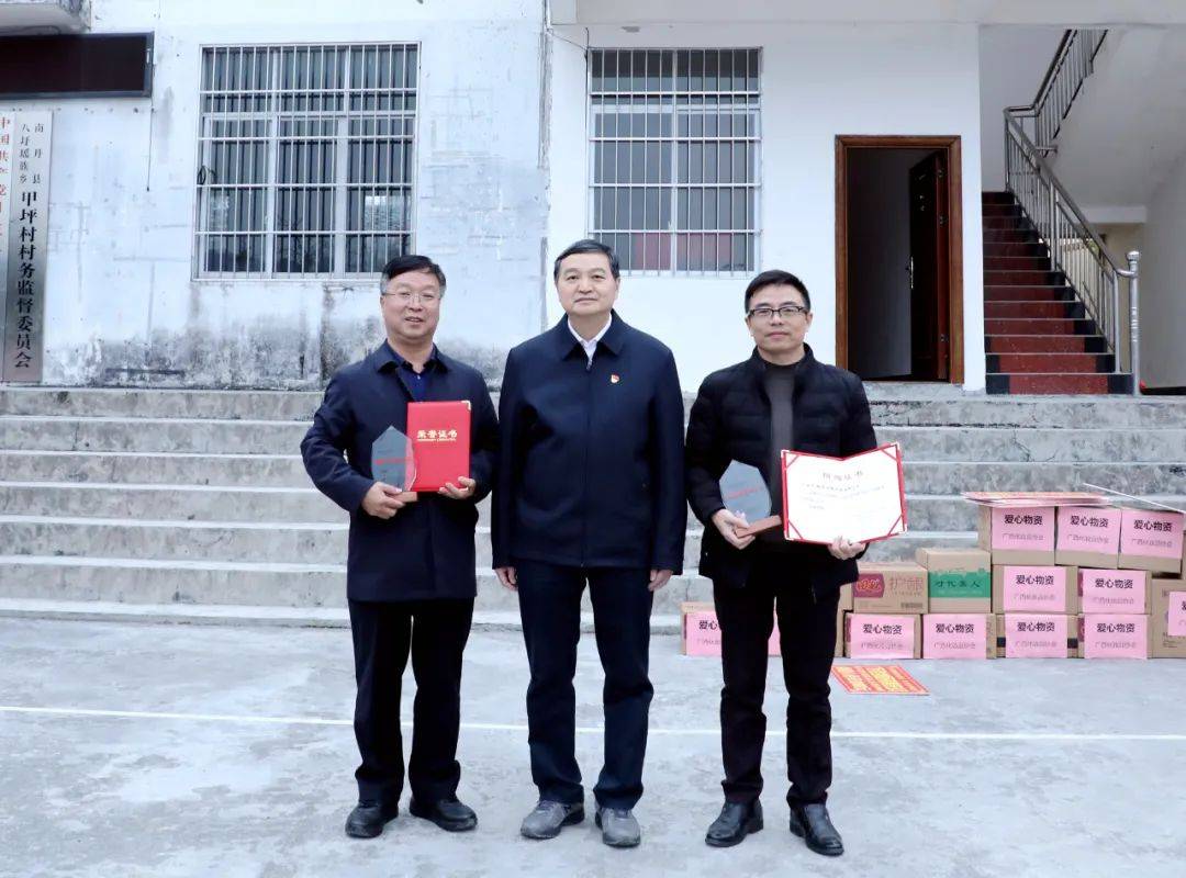 会议结束后,全体人员前往甲坪村开展爱心捐赠活动。在捐赠仪式上,随行所有企业向甲坪村捐赠了一批急需的物资,并参与了部分基础设施的修缮工作,改善当地基础设施、提升村民生活品质。