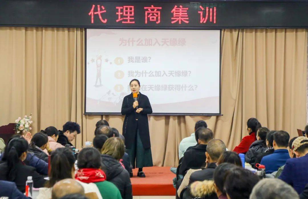 培训内容丰富多样,涵盖了集团的发展历程、未来发展规划、深入的产品知识讲解以及服务强化等多个方面。郭阳总裁的《价值远景与展望》课程尤为引人注目,为经销商们描绘了一幅清晰的企业发展蓝图。郭总强调,天缘绿集团始终秉承“脚踏实地传播大爱 真心实意为他人着想”的企业精神,不仅要成为大健康行业的未来领军者,更要成为一家有温度、有情怀、有担当的企业。郭总的讲话情感真挚,深入人心,触动了在场每一位经销商的心弦。