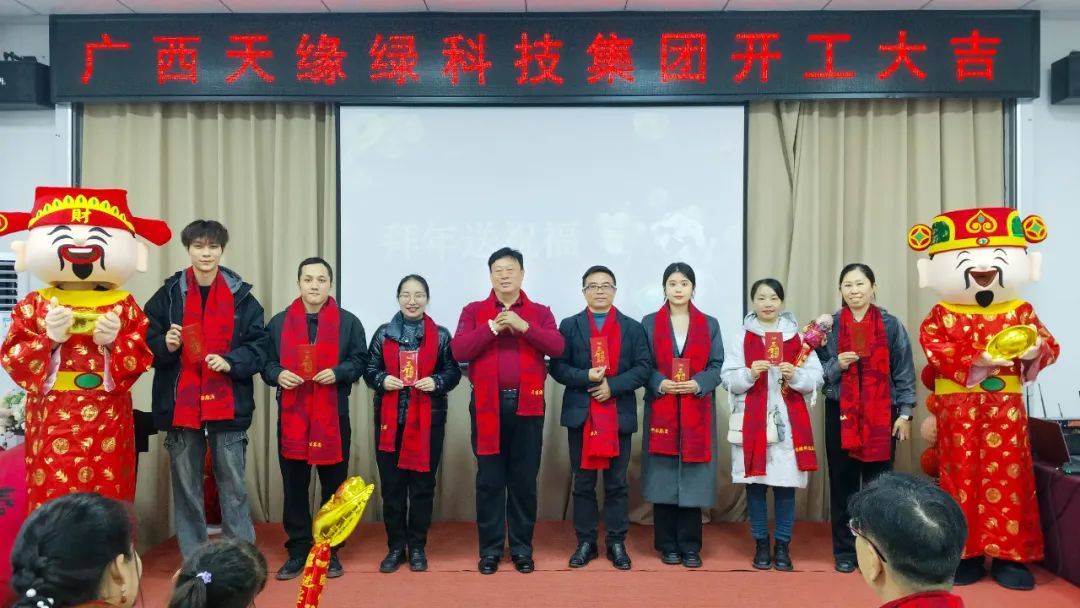 随着农历新年的钟声渐行渐远,春天的气息悄然弥漫。2025年2月6日,大年初九,广西天缘绿科技集团在天绿元素生活体验中心举办了一场别开生面的“金蛇聚势”开工活动。