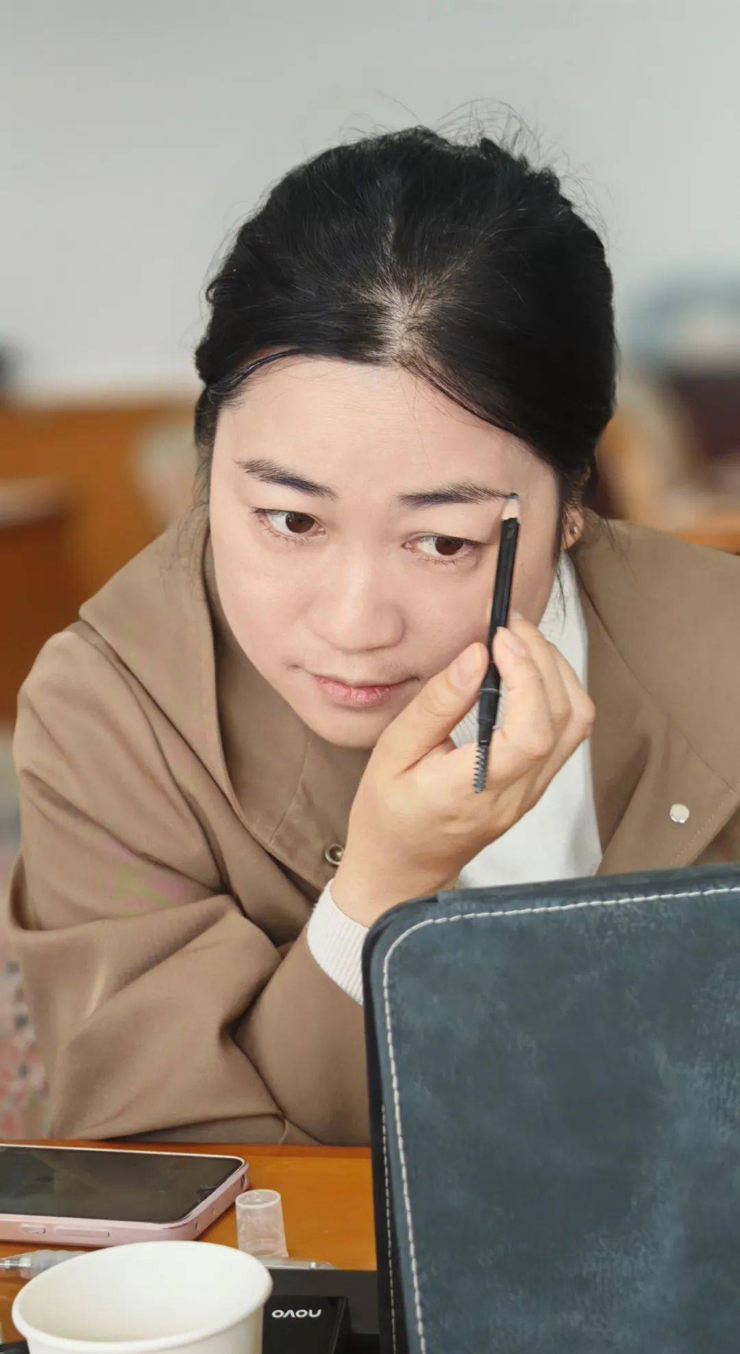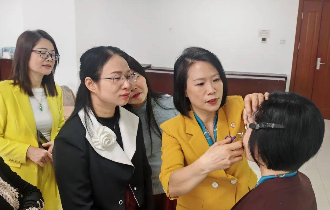 在彩妆技巧和方法环节,叶老师重点分享了眼妆的画法。她指出,眼影的晕染应遵循“先浅后深”的原则,先用浅色眼影打底,再用深色眼影在眼尾处晕染,以增强眼部立体感。对于新手而言,使用工具辅助画眼线可以避免手抖问题,这一技巧让参训职工受益匪浅。